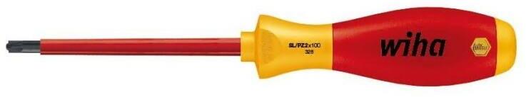 Wiha SoftFinish electric Xeno VDE csavarhúzó SL/PZ2x100 SL/PZ2x100 328/No. 30701 PlusMinus/Pozidriv Szárhossz: 100 mm Teljes hossz: 218 mm Nyél legnagyobb átmérője: 36 mm Feszültségvezető részek környezetében végzett munkákhoz 1.000 V AC-ig. Nem csúszik ki a csavar és jobb a nyomatékátadás plusz-mínusz sorkapocs-csavaroknál, pl. kapcsolószekrényekben, biztosítódobozokban