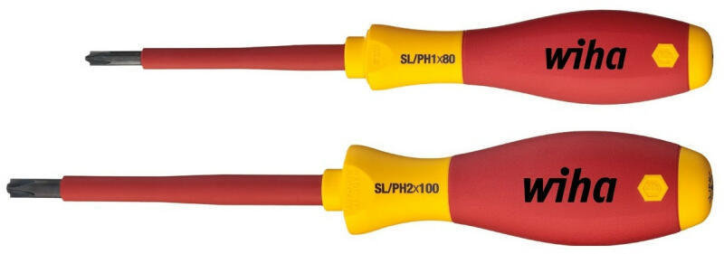 SoftFinish® electric Xeno csavarhúzó készlet, 2 részes Max. 1000 V AC feszültség alatt álló részeken végzett munkákhoz. Többé nem csúszik ki és jobb a nyomaték átvitele a Plusz-Mínusz rögzítőcsavaroknál, pl. kapcsolószekrényekben, biztosíték szekrényekben és sorkapcsoknál. Nyél: többkomponensű nyél, ergonomikus Wiha SoftFinish®, elgurulás elleni védelemmel. Pen