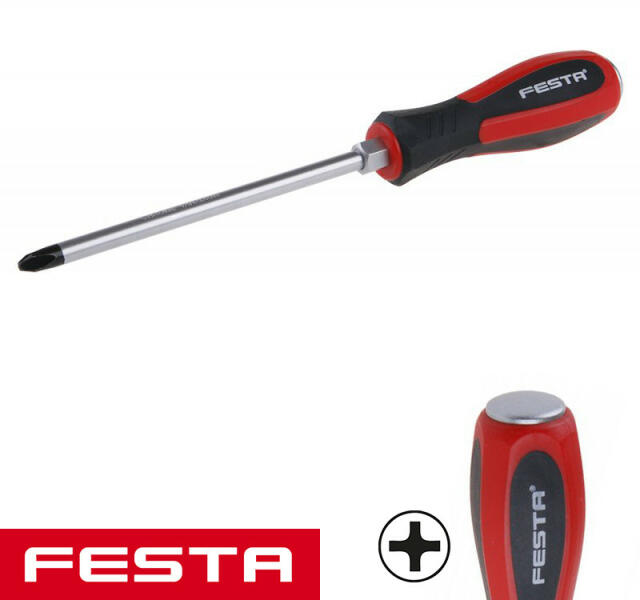 üthető csavarhúzó CrV - PH3x150 mm Kiváló minőségű króm-vanádium acélból készült üthető csavarhúzó, edzett hegye mágneses. Csavarhúzó száron hatszögletű rész csavarkulcs használatához. 2K markolat polipropilén és gumi kombinációja, ergonomikus formája pedig jó ütésállóságot garantál.
