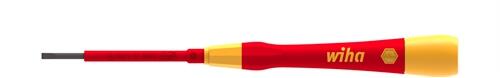 VDE lapos csavarhúzó WERA slim Kivitel: Erősen ötvözött speciális acélból. Kerek, szigetelt pengével. A markolat és a penge 1000 V feszültségig szigetelt az IEC 60900, DIN EN 60900, VDE 0682/201. része szerint. Ezenfelül a csavarhúzó fejére beütve feltüntették a profilt és a méretet. Csökkentett átmérőjű penge mélyen fekvő csavarok és rugós szorítók eléréshez. 3