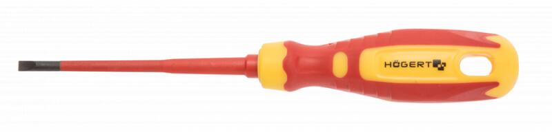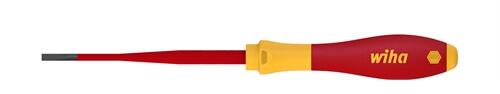 termékleírások hornyos csavarhúzók, feszültség alatti elektromos vezetékeken való megmunkáláshoz, akár 1000 V feszültségű, mindkét oldalon, párhuzamos konvergáló profillal. a vékony tengely lehetővé teszi a mélyen elhelyezett csavarokkal és csavarokkal történő munkavégzést. jellemzők megfelelés a din 60900-nak vde 1000 v névleges kiváló minőségű króm-molibdén