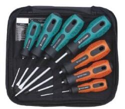 Tartalma:·4féle lapos- és 3 féle csillagcsavarhúzó·Szövet tokban.