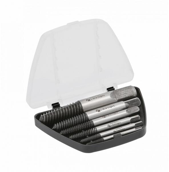 elcsavarodott és törött csavarok eltávolításához 6 csavarkihúzó: M3-M6, M6-M8, M8-M11, M11-M14, M14-M18, M18-M25.