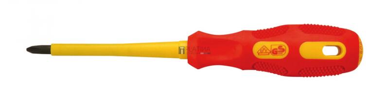 HANS Phillips szigetelt csavarhúzó PH0x60/130mm 0828PH0 az iSzerszámnál. Professzionális, ipari minőségű (Industrial) HANS Phillips (PH) szigetelt csavarhúzó. Méret: PH0 mm. Pengehossz: 60 mm. Teljes hossz: 130 mm. Anyaga Króm-vanádium. Ergonomikus kialakítású, kémiailag semleges, kétkomponensű markolat. Csúszásbiztos kivitel, kényelmes fogás. Kemény műanyag mag a penge bi