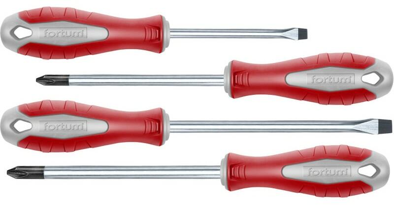 Fortum csavarhúzó készlet (4740920) Jellemzők:4 db / készlet;CrV, mágneses csavarbehajtóval;Lapos: 4 × 75 mm, 6 × 125 mm;PZ: PZ1 × 100, PH2 × 125;Ergonomikus, csúszásmentes markolat;Papír dobozban.