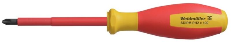 WEIDMÜLLER SDIPM PH2 X 100 VDE szerint szigetelt csavarhúzó, Phillips típus, 2. méret, 100 mm (2749970000) Term ékinformáció: VDE-szig etelésű csavarhúzó készletek, max. 1000 V AC és 1500 V DC feszültség alatt álló alkatrészekhez, DIN EN 60900. IEC 900. Minden darab „GS Safety bevizsgálással. A vágókés edzett, magas minőségű króm-vanádium-molibdén acélból készül