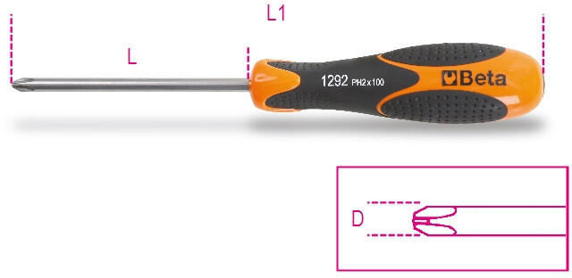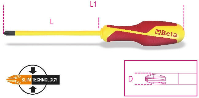 Beta 1276MQ/C, kombinált csavarhúzó PZ kereszthornyos + egyenes hornyú csavarokhoz, PZ2+LPP Beta által gyártott szigetelt szerszámok tervezésénél az elektromossággal kapcsolatos előírásokat tartották szem előtt. Minden szigetelt szerszám lehetővé teszi a munkát feszültség alatti berendezéseken: váltóáramnál 1000 V alatti , egyenáram esetén 1500 V alatti feszültségig.