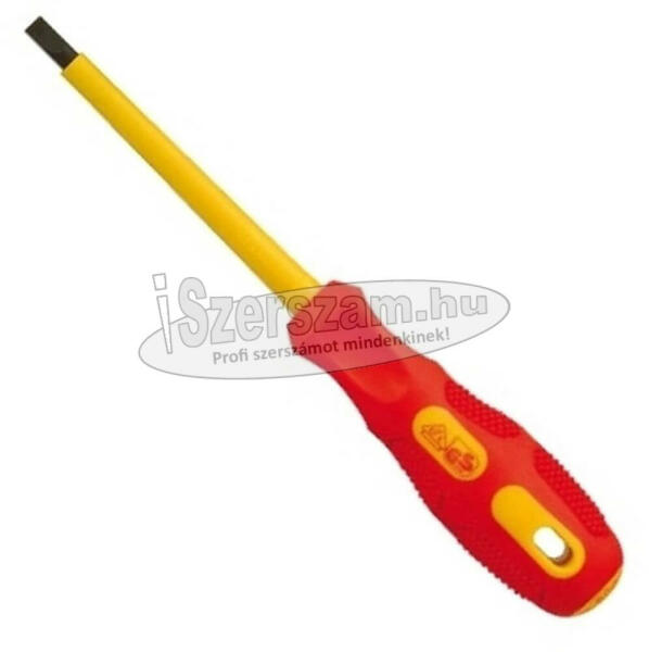 HANS szigetelt lapos csavarhúzó SL6,5x150/260mm 0818M6-6 VDE 1000V az iSzerszámnál. Professzionális, ipari minőségű HANS lapos, szigetelt csavarhúzó. Méret: SL6,5 mm. Teljes hossz: 260 mm. Pengehossz: 150 mm. Anyaga: Króm-vanádium. Ergonomikus kialakítású, kémiailag semleges, kétkomponensű markolat. Csúszásbiztos kivitel, kényelmes fogás. Kemény műanyag mag a penge biztos