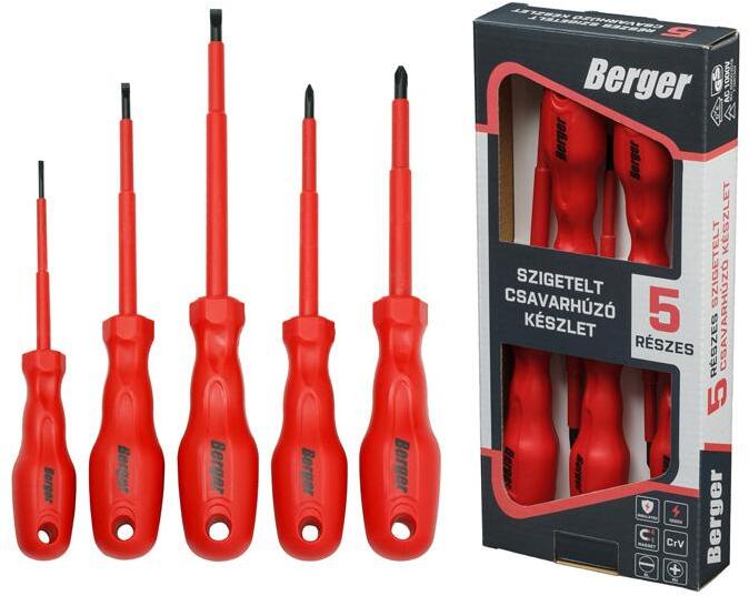 Jellemzők Professzionális minőségű 1000V feszültségig szigetelt csavarhúzó készlet mágneses fejjel, csúszásmentes és olajálló jó fogású gumimarkolattal, praktikus műanyag tartóban PH-s és lapos csavarhúzókkal . Bevizsgált, Európai unióban engedélyezett , VDE minősített, GS TÜV miősített, IEC60900:2004 standard szerinti villanyszerelő csavarhúzó mindennapos ipari