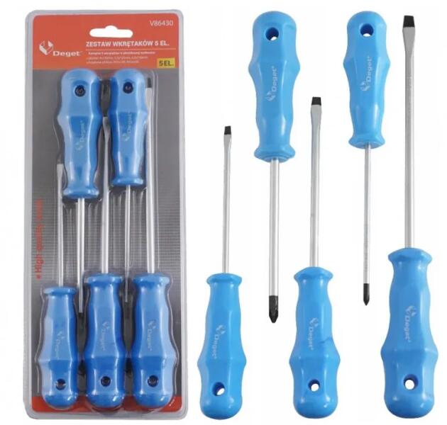 Csavarhúzó készlet króm vanádium acélból (CrV). Az ergonómikus fogantyú biztosítja a szerszám biztonságos fogását, és a hatékony, pontos munkát. A készlet három laposfejű csavarhúzóból és két Phillips keresztfejű csavarhúzóból áll. A csavarhúzók méretét úgy választották meg, hogy megfeleljenek minden otthonban és műhelyben használt csavaroknak. A SZETT TARTA