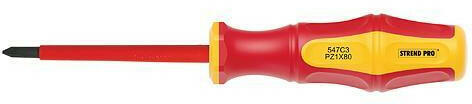 A Strend Pro villanyszerelo csavarhúzó nem hiányozhat a villanyszerelok, valamint a barkácsolók felszerelésébol. Ez egy PH1 x 80 mm-es csillagcsavarhúzó. A nyél csúszásgátló védelemmel ellátott muanyagból készült és kényelmes fogást biztosít, felakasztható. Pengéje krómvanádiumból készült és mágnessel rendelkezik. Biztonságos szigetelést biztosít 1000 V-ig tört