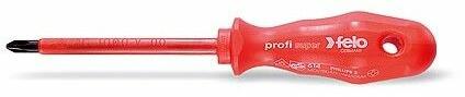 FELO PH szigetelt csavarhúzó. A markolatban található furat segítségével könnyen tárolható a szerszám és egy másik FELO csavarhúzó segítségével extra nyomaték érhető el. A csavarhúzó 1000 voltig használható. Minden darab 10.000 volttal tesztelt, megfelel az EN60900 szabványnak. Alkalmazása: Philips típusú - általában lemez- és gipszkarton csavarokhoz. Méretei: PH3,