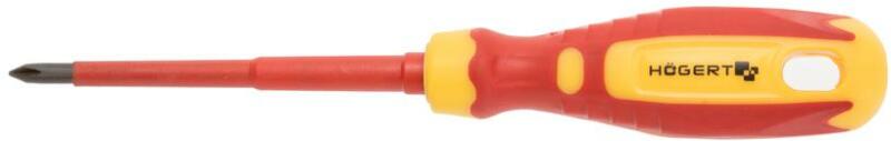 HÖGERT Keresztcsavarhúzó 1000V, PH2, 100 mm, CrMo acélötvözet (HT1S966) Termék információ: Anyaga : CrMo nemesacél ötvözet Méret: PH2 100 mm PH 1000V-os keresztcsavarhúzó feszültség alatti munkavégzéshez A vékony szár lehetővé teszi a mélyebben fekvő kötőcsavarokkal és csavarokkal való munkát Megfelel az EN 60900 szabványnak VDE 1000V-os tanúsítvány Tartós, defor