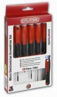 A Ceta Form Micro csavarhúzó készlet tartalma: 1,5x40 mm; 2x60 mm; 2,5x80 mm; 3x80 mm; PH00x60mm; PH0x60 mm csavarhúzó. Pótlólagos indukciós edzéssel készített vágóélekkel, melegforgácsolással készült edzett és hőkezelt minőségi szerszámacélból, tükörpolír kivitellel. Acél szegecses rögzítés. Egyszeri illesztésű merev konstrukcióval a tartósság érdekében. Heg