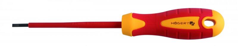 termékleírás szigetelt hornyos csavarhúzók 1000 V feszültségig feszültség alatt álló elektromos vezetékeken való megmunkáláshoz. Csavarhúzók hornyos csavarokhoz. egyetlen rés legyen a rögzítőfejben. mindkét oldalon párhuzamos konvergáló profillal köszörült. jellemzők en 60900-nak való megfelelés vde 1000 v névleges kiváló minőségű s2 acélból készült tartós