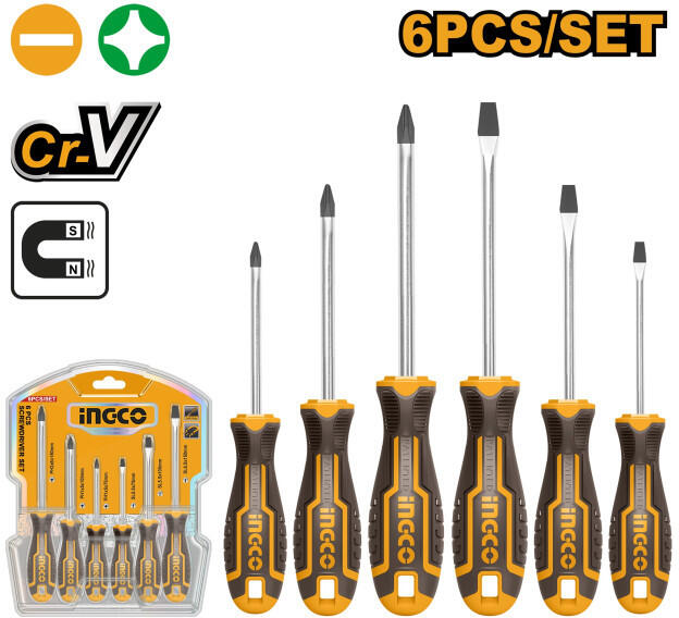 Méretek: 1 db SL5.5 x 5 x 75 mm, 1 db SL5.5 x 5 x 100 mm, 1 db SL6.5 x 6 x 150 mm, 1 db PH1 x 5 x 75 mm, 1 db PH1 x 5 x 100 mm, 1 db PH2 x 6 x 150 mmErős mágnessel Szállítási terjedelem: 6 db csavarhúzó CrV, Bliszterben