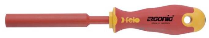 FELO M-TEC szigetelt csavarhúzó hatlapú csavarokhoz, ERGONIC markolattal. Az egyetlen markolat, melynek a belsejében lévő zselés cella alkalmazkodik a felhasználó tenyeréhez, a maximális nyomaték kifejtése mellett, egyedülállóan kényelmessé teszi a munkavégzést. A csavarhúzó 1000 voltig használható. Minden darab 10.000 volttal tesztelt, megfelel az EN60900 szabványnak. Mé