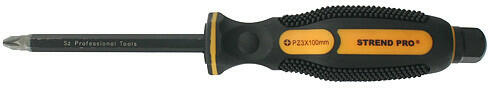 A Strend Pro csavarhúzó kisebb méretu összeszerelésre és javításra szolgál, mérete 3 x 100 mm. Az ergonomikusan kialakított fogantyú kényelmes munkavégzést biztosít. A különösen vékony forma jobb hozzáférést biztosít a mélyebben elhelyezkedo csavarokhoz. Ütoszeggel van felszerelve.