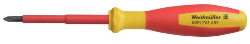 WEIDMÜLLER SDIK PZ1 X 80 VDE szerint szigetelt kereszthornyos csavarhúzó, Pozidriv típus, 1. méret (2749920000) Term ékinformáció: VDE szigetelt csillagfejű csavarhúzó, típus: Pozidriv, SDIK PZ DIN 7438, ISO 8764/2-PZ, kimenet ISO 8764-PZ szerint, SoftFinish-markolat Adatlap letöltése