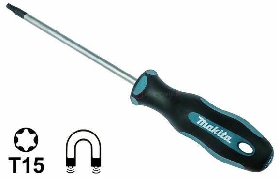 Makita Cr-V csavarhúzó T15Mágneses heggyel. Csúszásmentes és olajálló fogantyúval a jobb irányítás érdekében. Általános szerelőmunkákhoz.