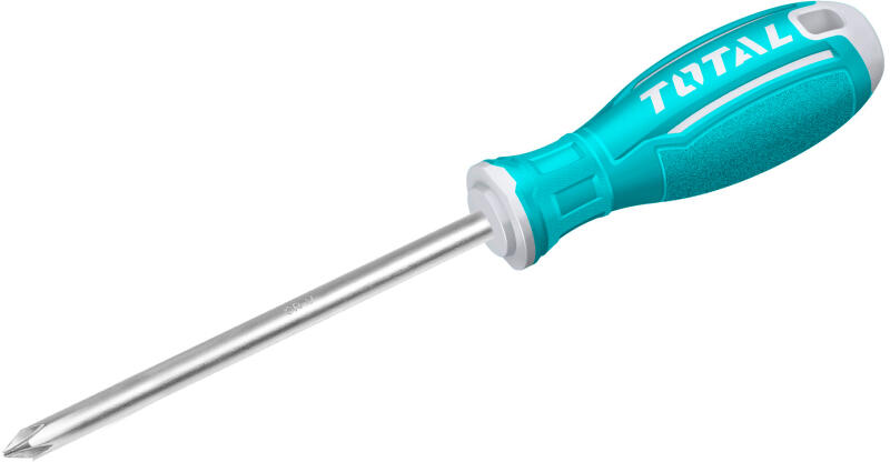 Phillips csavarhúzó PH1*100mm (TSDRSPH1100) A TOTAL TSDRSPH1100 kereszthornyú csavarhúzó ideális eszköz mindennapi javításokhoz, összeszerelési és szétszerelési munkákhoz. A csavarok, anyák, hatlapfejes csavarok és önmenő csavarok rögzítésére és lazítására szolgál. Az eszköz mérete 100 mm, 5 mm átmérőjű. A csavarhúzó hegye precízen illeszkedik a rögzítési pr