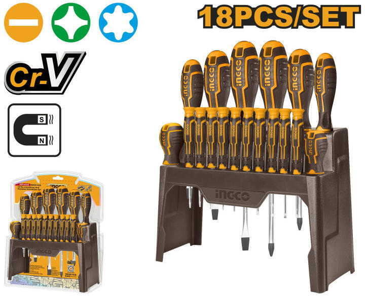 Méretek:, 1 db SL5.5 x 5 x 75 mm, 1 db SL6.5 x 6 x 100 mm, 1 db SL8.0 x 8 x 150 mm, 1 db SL6.5 x 6 x 38 mm, 1 db PH1 x 5 x 75 mm, 1 db PH2 x 6 x 100 mm, 1 db PH3 x 8 x 150 mm, 1 db PH2 x 6 x 38 mmErős mágnessel10 db precíziós csavarhúzó:, SL1.5 x 50, Sl2 x 50 mm, SL2.5 x 50, Sl3 x 50 mm, PH000 x 50, PH00 x 50 mm, PH0 x 50 mm, T6 x 50, T8 x 50, T10 x 50 mm Szállítási terjedelem: 18 db csa