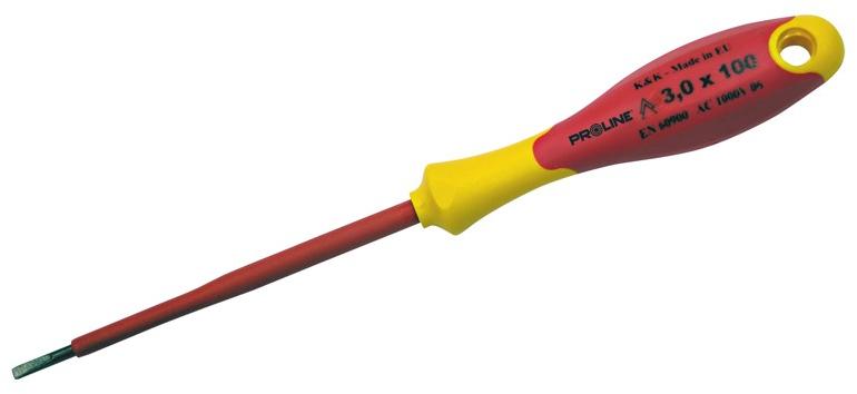FELO lapos szigetelt csavarhúzó hornyos csavarokhoz, ERGONIC markolattal. Az egyetlen markolat, melynek a belsejében lévő zselés cella alkalmazkodik a felhasználó tenyeréhez, a maximális nyomaték kifejtése mellett, egyedülállóan kényelmessé teszi a munkavégzést. A csavarhúzó 1000 voltig használható. Minden darab 10.000 volttal tesztelt, megfelel az EN60900 szabványnak. Mér