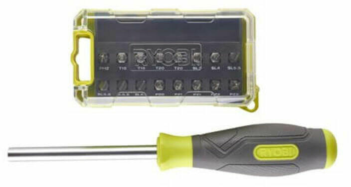 Ryobi 17 részes vegyes csavarhúzó készlet | RSD17PCS 17 részes vegyes csavarhúzó készlet. Gumi fogantyú. Csavarhúzó TPR gumi fogantyú 100 mm-es hosszú csavarhúzóval. Tömör acél tengely. Mágneses ¼ bittartó. Ergonomikus markolat. 16 bit. MOQ: 8 darab