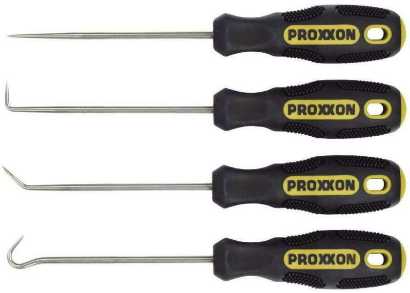 Proxxon Profi tömítés eltávolító, alkalmas O-gyűrűk, szimeringek, tömítések, puha tömlők eltávolításához, tisztításához. Speciális PP+TPR kényelmes markolattal szerelt kivitel Rendkívűl strapabíró acél szárak Tartalom: 1 db egyenes szárú hegyes végű kaparó ergonómikus markolattal 1 db kampós szárú hegyes végű kaparó ergonómikus markolattal 1 db 45° hajlít