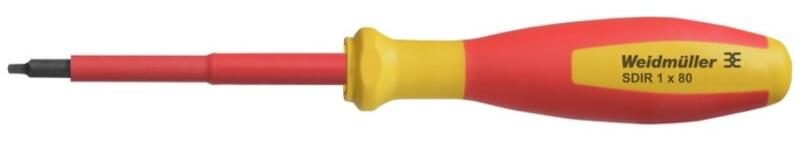 WEIDMÜLLER SDIR 1 X 80 VDE szerint szigetelt csavarhúzó, négyzetes, 1, 80 mm (2750020000) Term ékinformáció: VDE-szig etelésű csavarhúzó készletek, max. 1000 V AC és 1500 V DC feszültség alatt álló alkatrészekhez, DIN EN 60900. IEC 900. Minden darab „GS Safety bevizsgálással. A vágókés edzett, magas minőségű króm-vanádium-molibdén acélból készült, kékesszürke b