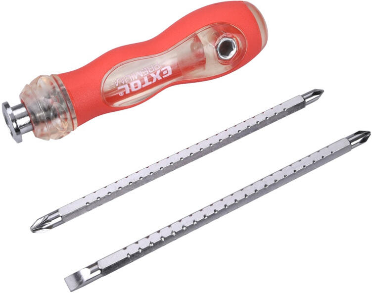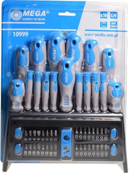 Csavarúzó készlet, bitfejekkel, bitfej adapterrel és le / felmágnesezővel Króm-vanádium-acél Csúszásmentes SOFT-TOUCH markolat Mágneses fej Lapos fejű csavarhúzók: 6.5×38, 4.0×75,6. 5×100, 8.0×150 Philips fejű csavarhúzók: PH2×38, PH1×75, PH2×100, PH3×150 Bitfej adapter: 6.3×75mm Lapos fejű csavarhúzók: 2.0×75, 2.5×75, 3.0×75 Philips fejű csavarhúzók: PH00×75,