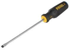 FELO lapos, műszerész csavarhúzó hornyos csavarokhoz, kétkomponensű csúszásmentes markolattal. A markolat végén elhelyezkedő szabadon forgó sapkának köszönhetően a súrlódás minimálisra csökken. A markolatban található furat segítségével könnyen tárolható a szerszám és egy másik FELO csavarhúzó segítségével extra nyomaték érhető el. Méretei: hegy szélesség