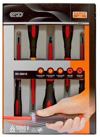 Szigetelt csavarhúzó készlet hornyos és Phillips® PH csavarokhoz. Feszültség alatt lévő berendezésekhez, 1000 V-ig. . IEC60900 / DIN-EN 60900 / EN 60900 / VDE 0682/201 . A csavarhúzók vizsgálata a legutóbbi hazai és nemzetközi szabványok szerint:. - darabonként, vízfürdőben, 10KV-tal. - a gyártási év megjelölésével. - intenzív hidegtörés teszt. Kivitel:a szár teljes