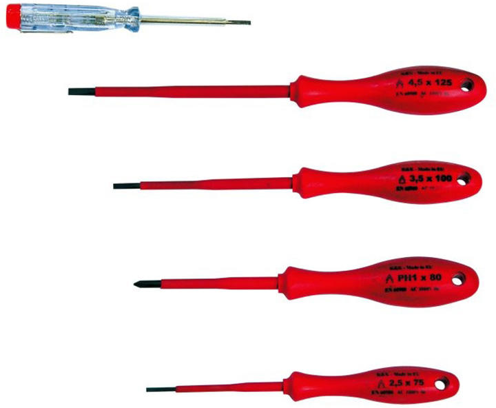 Advantages: - Ergonomic design for comfortable, firm grip - Magnetic end of all the screwdrivers - Long operating life - High level of security Functions: - Repairing of electrical installations - Lighting - mounting and repair Applications: - In Chemical industry - For low voltage networks - In electrical stations and substations - Telecommunications - Lighting - mounting and repair Health and Sa
