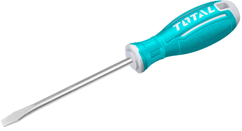 Lapos csavarhúzó SL6,5x150 mm (TSDRSSL6150) A TOTAL TSDRSSL6150 sík csavarhúzó használati célra készült, amelynek sík furata van. Ez az ideális eszköz a háztartási, javítási, építőipari, összeszerelési és szétszerelési feladatok megoldására. Az eszköz mérete 150 mm, a furat pedig 6,5 mm. A hegy teljesen illeszkedik a rögzítés profiljához, ezáltal csökkenti a sér