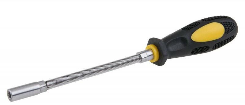 A termék leírása: 1/4 "-os csavarhúzó - bitekhez spirál rugalmas tengely kiváló minőségű króm-vanádium acélból, felületét kemény króm védi ergonómikus kétkomponensű fogantyú a polipropilén és a TPE gumi kombinációja kiváló csúszásgátló tulajdonságokat, valamint kenőanyagokkal és vegyszerekkel szembeni ellenállást garantál