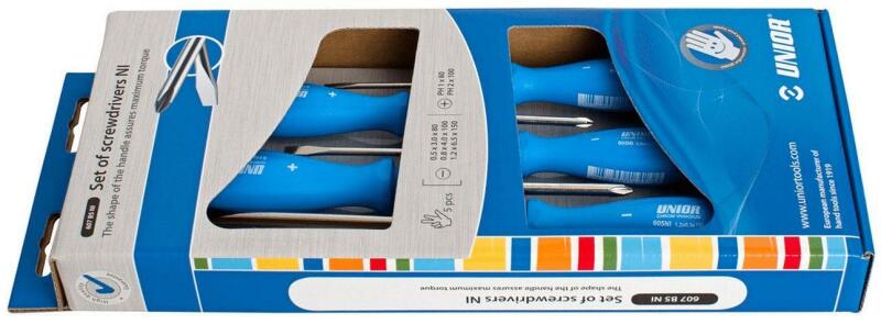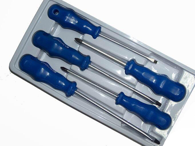 Kereszt- és lapos csavarhúzó készlet 5 dbCsavarhúzó készlet mindennapi használatra, tartalmaz 3 lapos- és 2 keresztcsavarhúzót. A csavarhúzók műanyag kádban vannak elhelyezve, dobozba csomagolva. Technikai paraméterek:Méretek:Lapos csavarhúzók 3 db: 4 x 100mm, 5,5 x 125 mm, 6,5 x 150 mm Keresztcsavarhúzók: PH1 x 100 mm, PH2 x 100 mm