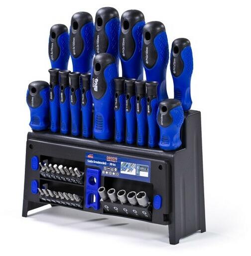 MAGG PROFI csavarhúzó készlet 39 db csillag lapos torx 080019 A termék jellemzői: Ergonomikus kialakítású, gumírozott markolat Edzett króm-vanádium acél szár mágnesezett fejjel A szett tartalma: 8 db csavarhúzó: Phillips (PH): PH1x75, PH2x38, PH2x100, PH3x150 Egyenes (SL): SL6.5x38, SL5.5x75, SL6.5x100, SL8.0x150 8 db percíziós csavarhúzó: Philips (PH): PH00x50, PH0x50 Egyenes