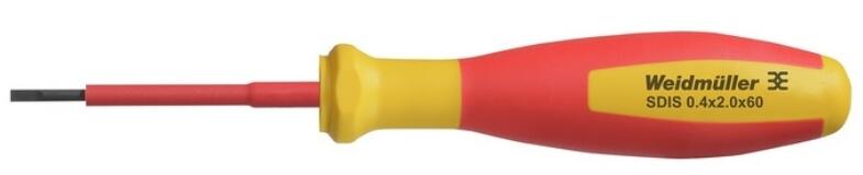 WEIDMÜLLER SDIS 0.4X2.0X60 VDE szerint szigetelt csavarhúzó hornyos pengével 0,4x2,0x60 (2749780000) Term ékinformáció: Szigetel t hornyos csavarhúzó, SDI DIN 7437, ISO 2380/2, Hegy: DIN 5264, ISO 2380/1 szerint, SoftFinish-markolat Adatlap letöltése