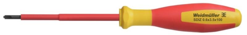 WEIDMÜLLER SDIZ 0.6X3.5X100 VDE szerint szigetelt csavarhúzó vezetőcsúccsal, 0,6 x 3,5 x 100 (2749980000) Term ékinformáció: Szigetel t hornyos csavarhúzó, SDI DIN 7437, ISO 2380/2, Hegy: DIN 5264, ISO 2380/1 szerint, SoftFinish-markolat Adatlap letöltése