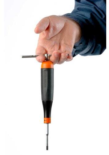 Torque screwdriver, fixed setting Accuracy ± 6% Over-torque limiting clutch, with a "click" sound High performance alloy steel Chrome plated and entirely hardened. Black finish tip for higher accuracy Designed for correct tightening of precision fasteners, for example in CNC machines ¼ hex drive for blades ¼ square drive for sliding T-handle Replaceable blades available Supplied with one TORX®