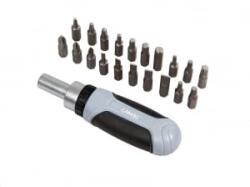 Tulajdonságok: 21 darabos racsnis csavarhúzó készlet A csomag tartalma:1 racsnis csavarhúzó4 phillips (csillag) bitfej: PH0, PH1, PH2, PH36 lapos bitfej: SL3, SL4, SL5, SL6, SL6.5, SL75 hatlap bitfej: H2, H3, H4, H5, H64 torx bitfej: T10, T15, T20, T25, T30