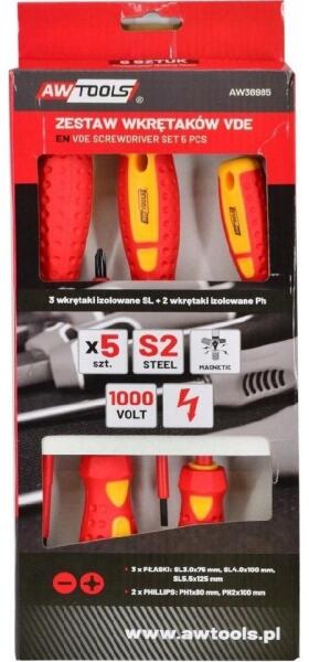 anyag: CrMokeménység: 52-58HRCelektromosan szigetelt: 1000 Wmarkolat: 2 komponensű, csúszásmentesSL3x75mmSL4x100mmSL5,5x12 5mmPH1x80mmPH2x100mmdarabszám: 5 dbEan kód: 5903678604073