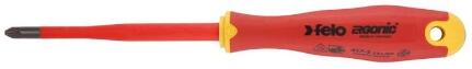 FELO Z+/-1 vékonyított szigetelt csavarhúzó ERGONIC markolattal. Az egyetlen markolat melynek a belsejében lévő zselés cella alkalmazkodik a felhasználó tenyeréhez a maximális nyomaték kifejtése mellett egyedülállóan kényelmessé teszi a munkavégzést. A csavarhúzó 1000 voltig használható. Minden darab 10.000 volttal tesztelt megfelel az EN60900 szabványnak. Alkalmazása: p