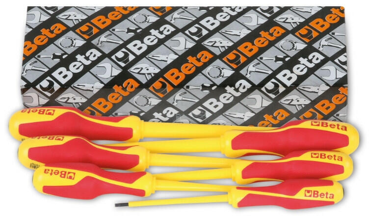 Beta 1274MQ/S6, 6 db-os csavarhúzó készlet egyenes hornyú hernyócsavarokhoz, Beta által gyártott szigetelt szerszámok tervezésénél az elektromossággal kapcsolatos előírásokat tartották szem előtt. Minden szigetelt szerszám lehetővé teszi a munkát feszültség alatti berendezéseken: váltóáramnál 1000 V alatti , egyenáram esetén 1500 V alatti feszültségig. A minőség,