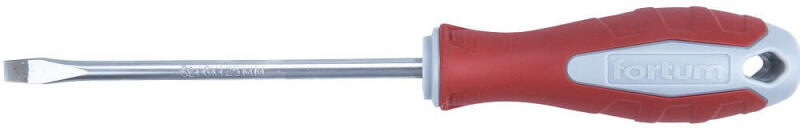 A Fortum lapos csavarhúzó ideális választás minden műszaki feladathoz. Az S2 acélból készült matt szárnak köszönhetően kiválóan ellenáll a kopásnak és HRC 58-60 keménysége révén tartósságát és megbízhatóságát garantálja. A kemény PP műanyagból készült, TPR gumival lágyított fogantyúja biztosítja a csúszásmentes fogást és növeli a csavarhúzó nyomaték
