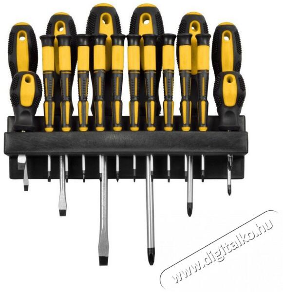 Kiváló minőségű mágneses hegyű csavarhúzó Tartós króm-vanádium acélszár Kényelmes TPR markolat, ergonómikus kialakítás a jobb fogás érdekében Az egyedi kialakítású markolat nagyobb nyomatékot biztosít a nagyobb erőkifejtés érdekében Könnyebb azonosítás a jól látható színjelölés révén Megnagyobbított rögzítőlyuk a T hajtás érdekében, nagyobb nyomaték