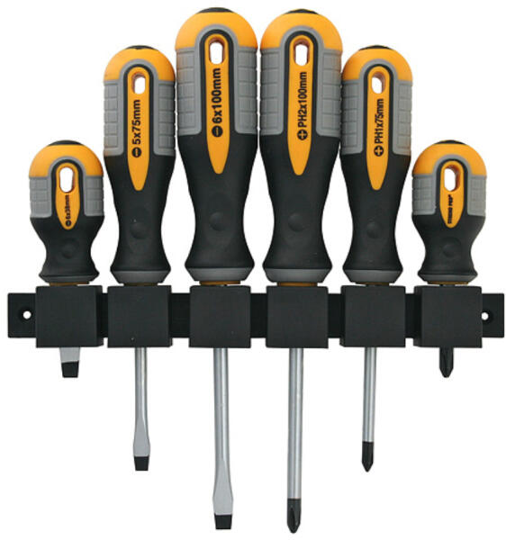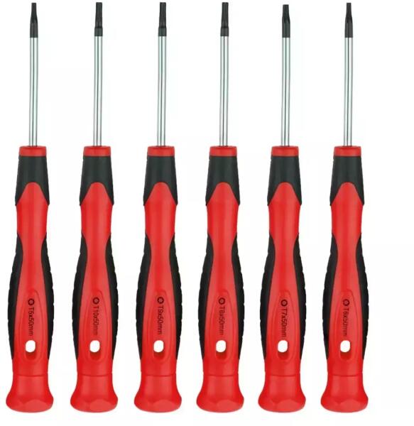 6 darabos precíziós csavarhúzó készlet elektromos munkákhoz, ékszerjavításhoz és háztartási feladatokhoz. A csavarhúzók króm-vanádium acélból készültek, amely biztosítja a szükséges keménységet és tartósságot. A kényelmes gumi nyél biztonságos fogást biztosít a felhasználónak használat közben. A csavarhúzók emellett mágneses hegyűek, ami nagyban megkönnyí