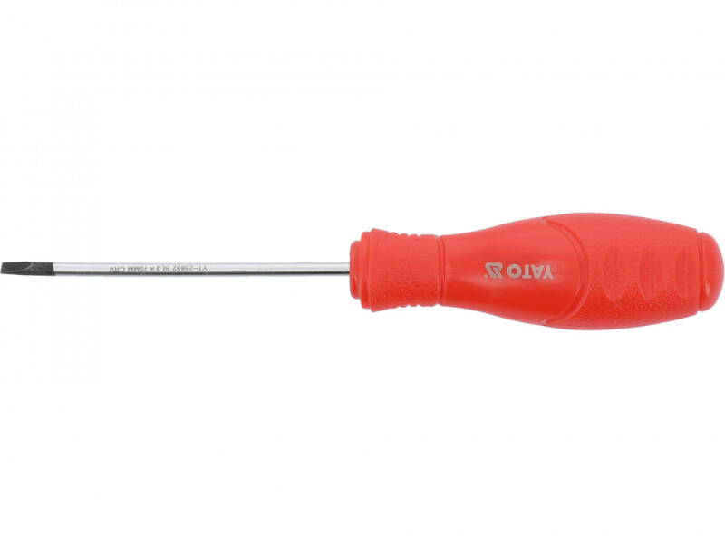 FELO Torx csavarhúzó, különösen nagy igénybevételre tervezett, kétkomponensű markolattal. Méretei: T7, penge hossza: 60 mm, penge átmérője: 3,0 mm, markolat hossza: 80 mm, markolat legnagyobb átmérője: 25 mm. Penge Anyaga: króm-molibdén-vanádium acél ötvözet. Felületkezelés: krómozott, a hegy bevonat nélküli a pontos méret és illeszkedés érdekében.