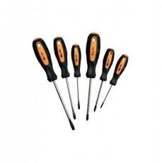 króm-vanádium élek mágneses vég ergonomikus műanyag nyél lapos: 4 x 75 mm/ 5,5 x 100 mm/ 6,5 x 125 mm keresztélű: PH 0 x 60 mm/ PH 1 x 75 mm, PH 2 x 100 mm